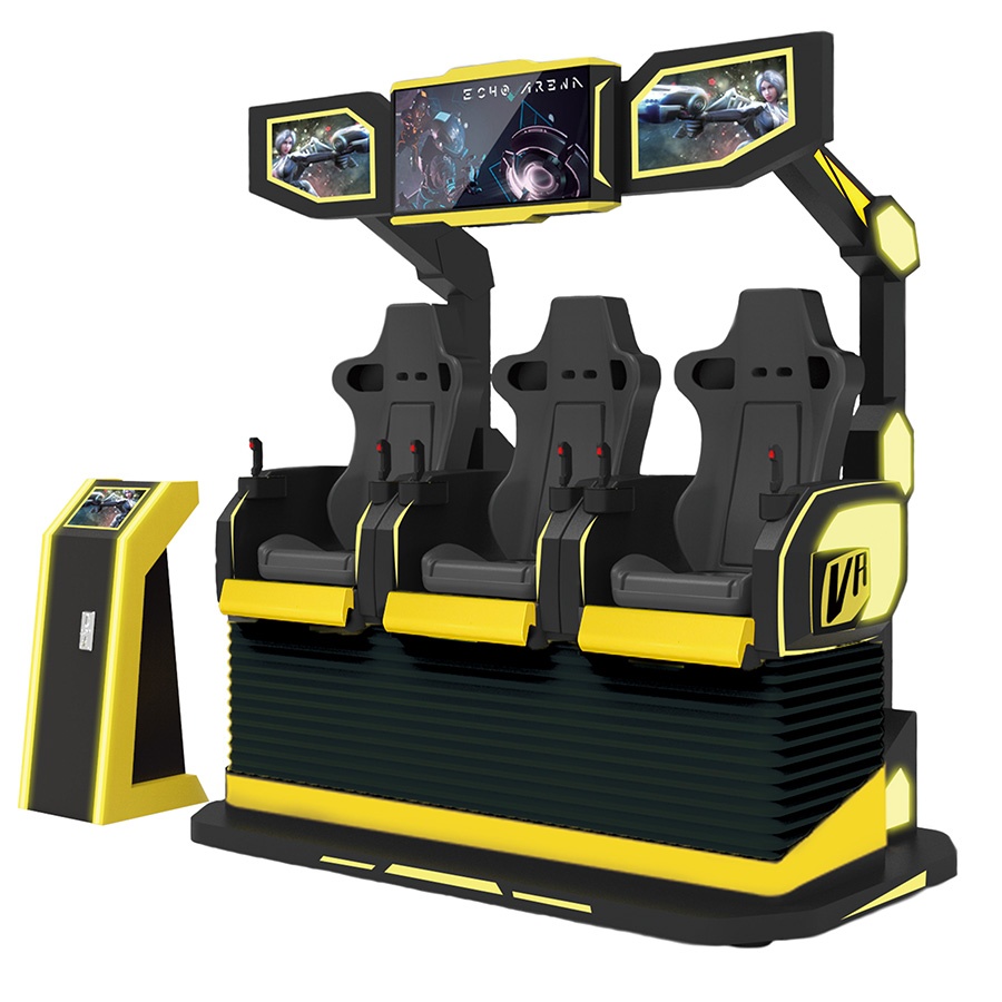 Увлекательный аттракцион нового поколения Виртуальная реальность VR Cinema (3 места) создает ощущение полного погружения и чувство физической реальности с помощью визуальных и физических спецэффектов. Видеосимулятор VR Cinema (3 места) позволяет игроку управлять виртуальной реальностью с помощью устройств, которые имитируют настоящие.