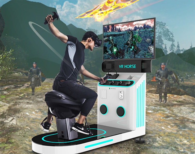 Увлекательный аттракцион нового поколения Виртуальная реальность VR Horse Riding создает ощущение полного погружения и чувство физической реальности с помощью визуальных и физических спецэффектов. Видеосимулятор VR Horse Riding позволяет игроку управлять виртуальной реальностью с помощью устройств, которые имитируют настоящие.