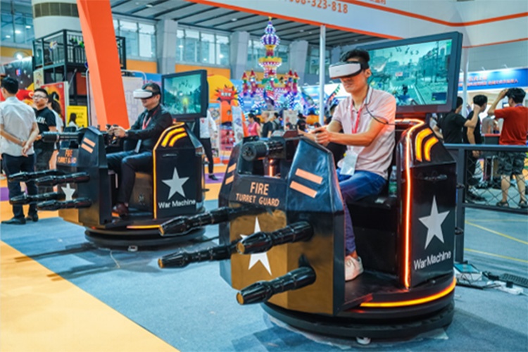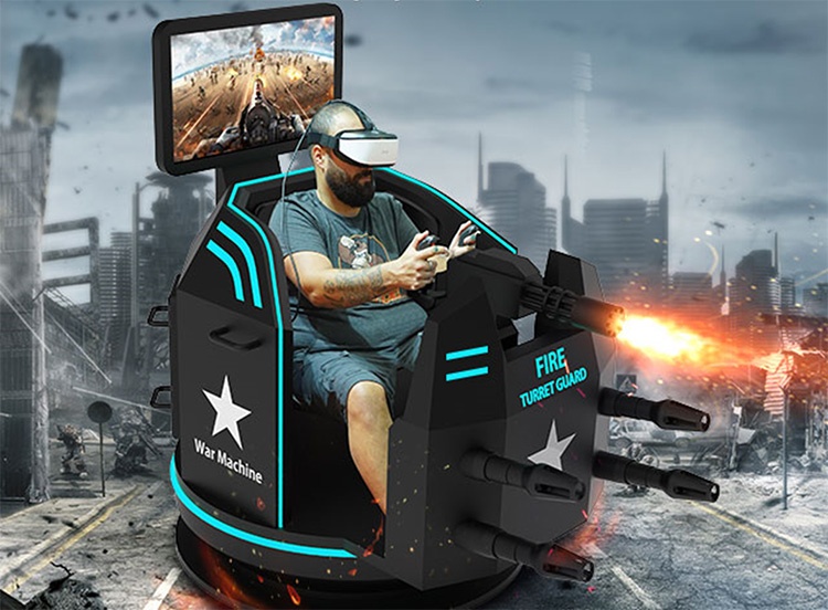 Увлекательный аттракцион нового поколения Виртуальная реальность VR War Machine создает ощущение полного погружения и чувство физической реальности с помощью визуальных и физических спецэффектов. Видеосимулятор VR War Machine позволяет игроку управлять виртуальной реальностью с помощью устройств, которые имитируют настоящие.