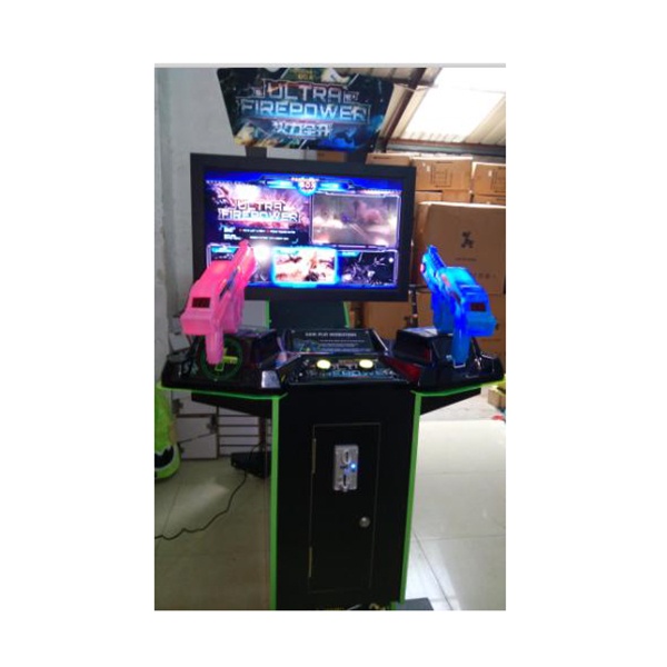Аттракцион-симулятор стрельбы Ultra Fire Power 3 in 1 – это захватывающий игровой автомат, оснащенный большим экраном 42″ с хорошей графикой, а также прекрасной акустической системой и подсветкой, синхронизирующейся с происходящим действием в игре. На выбор представлены различные виды тематических видео игр различной сложности: Aliens, Paradise Lost, The Head of House.
