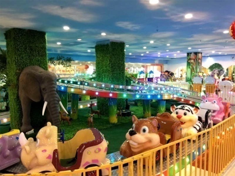 Трековый аттракцион для детей Animal – это поезд из вагончиков, выполненных в виде животных, который двигается по заданной траектории с двумя или с одним внутренним кругом под музыкальное сопровождение. Путешествие в таком вагончике на 2 пассажира детского поезда Animal оставит веселые и незабываемые впечатления у ребенка.
