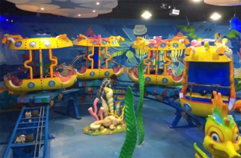 Трековый аттракцион для детей Great Barrier Reef – это поезд из вагончиков, выполненных в морской тематике, который двигается по заданной траектории с двумя или с одним внутренним кругом под музыкальное сопровождение. Путешествие в таком вагончике на 2 пассажира детского поезда Great Barrier Reef оставит веселые и незабываемые впечатления у ребенка.