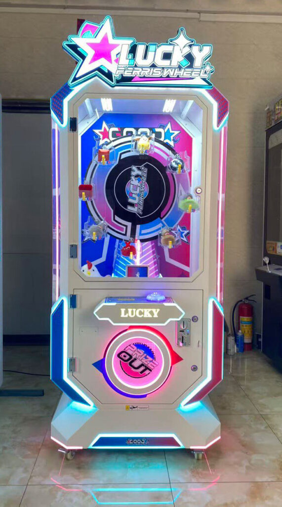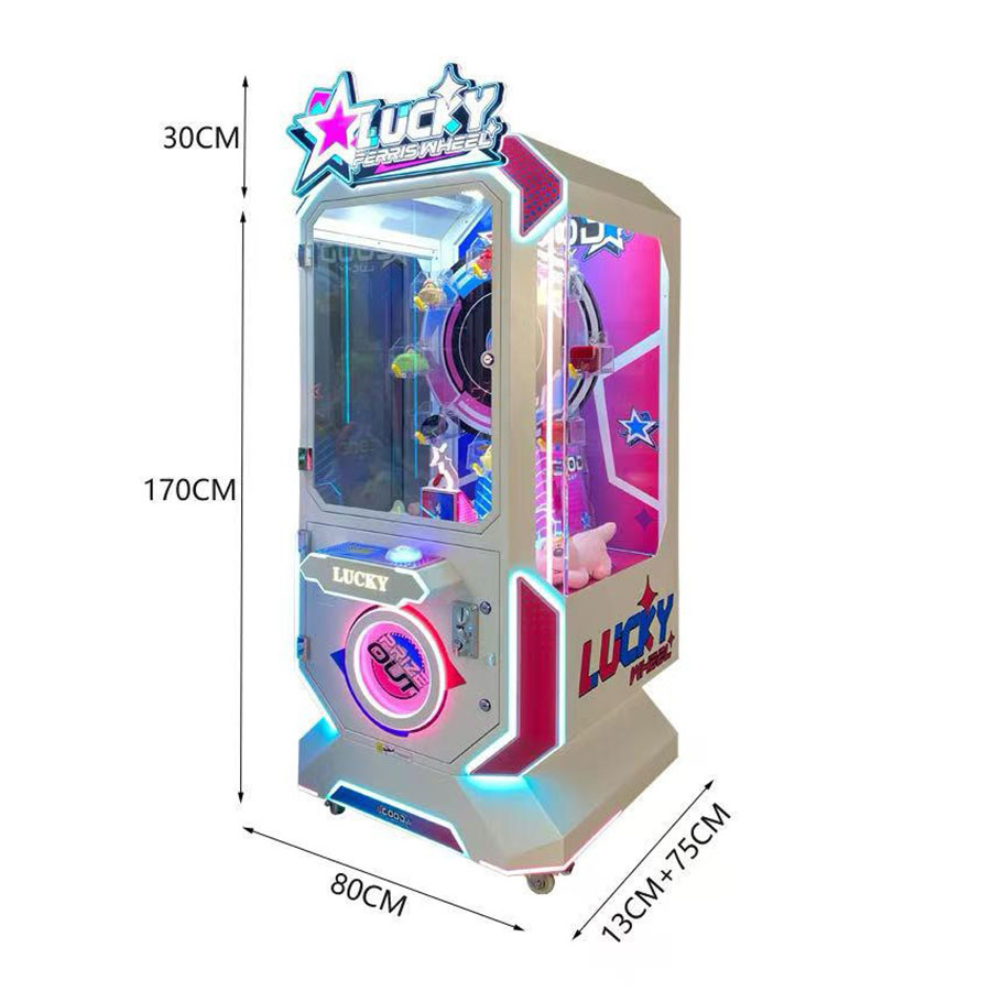 Це цікавий захоплюючий призовий атракціон Luсky Ferris Wheel із можливістю виграти іграшку, розташовану на тематичному круговому обертовому модулі.